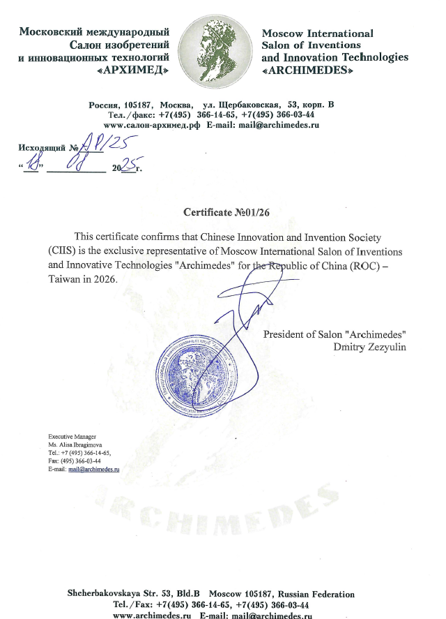 自2010年起,本會每年固定組團參加阿基米德國際發明展,並屢次獲得優異成績,充分展現臺灣在創新研發領域的深厚實力。迄今,本會已連續17年取得臺灣唯一授權 (獨家代理證書),負責推動與承辦此一重要國際發明展會,持續協助國內創新成果與國際接軌。阿基米德國際發明展為具高度指標性的國際發明與技術交流平台,每年吸引來自超過20個國家的創新團隊共同參與,透過跨國交流與合作,展現全球多元且蓬勃的創新能量。
